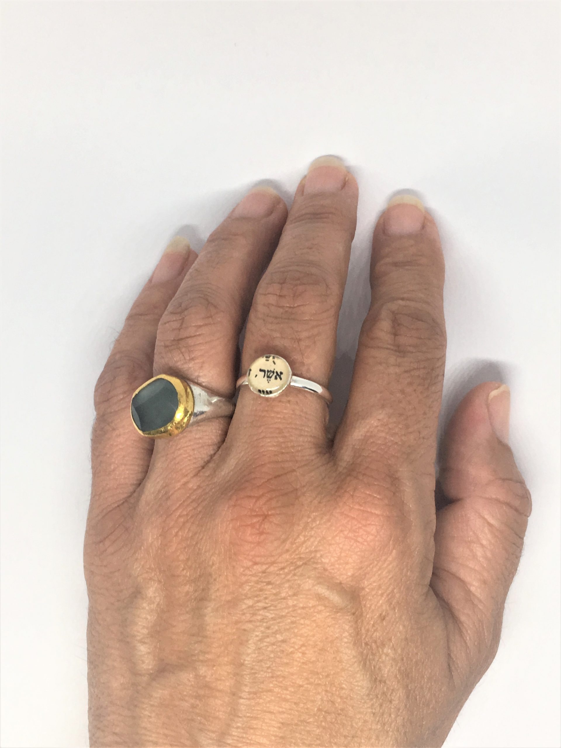 HAPPINESS, The word on this silver ring was taken from an old Hebrew dictionary.