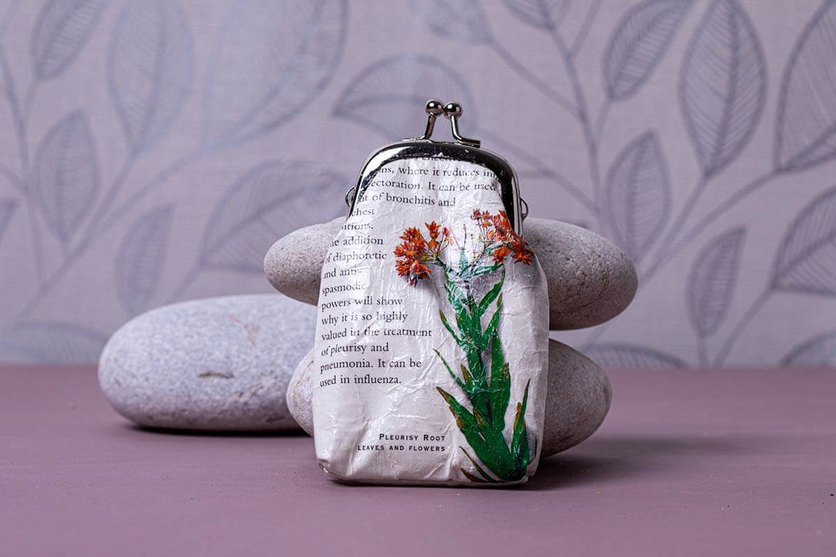 All paper is fortified using a special process that makes it into fabric. It’s then coated in a special resin that means the small coin purse is easy to care for and maintain.